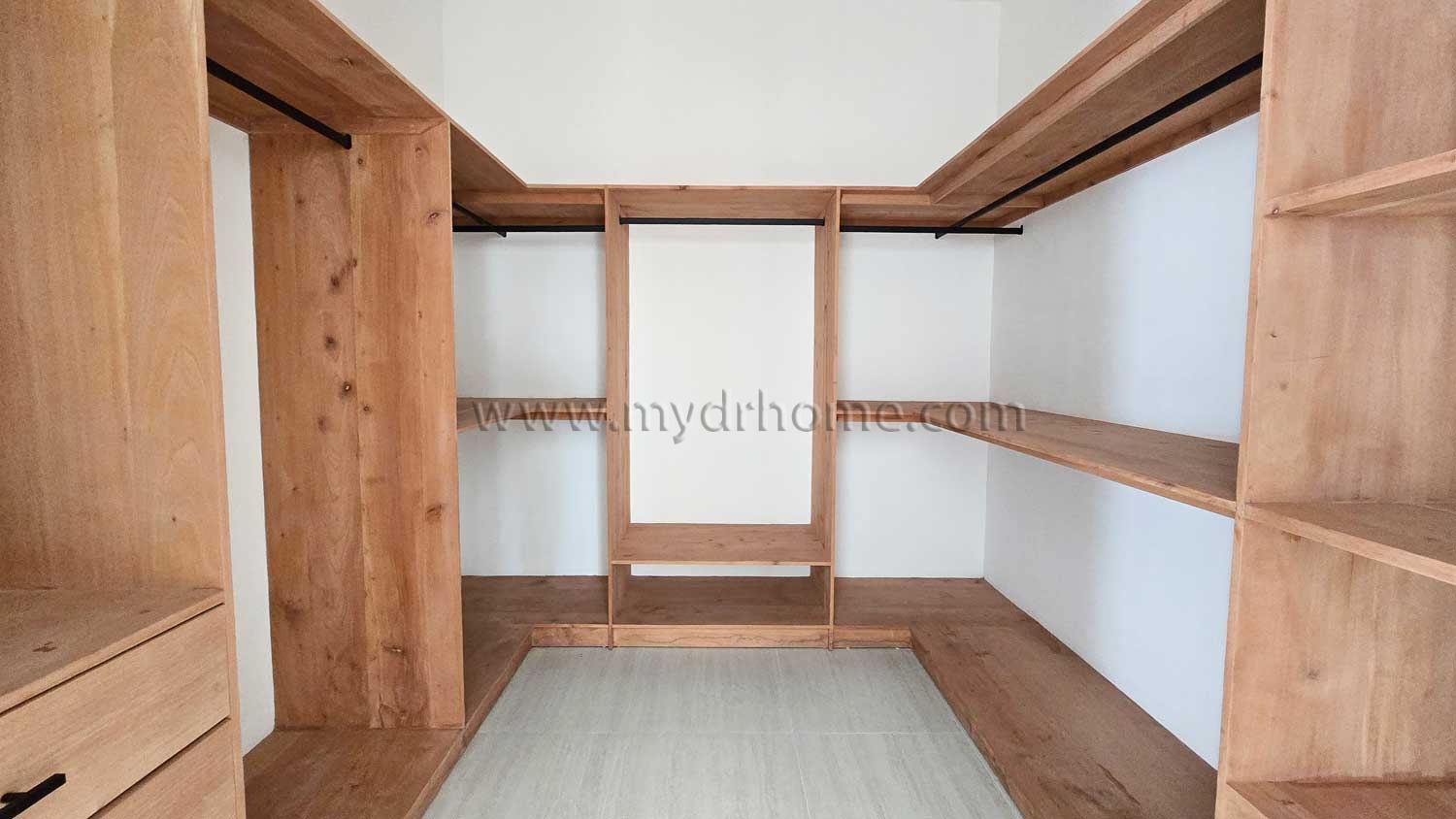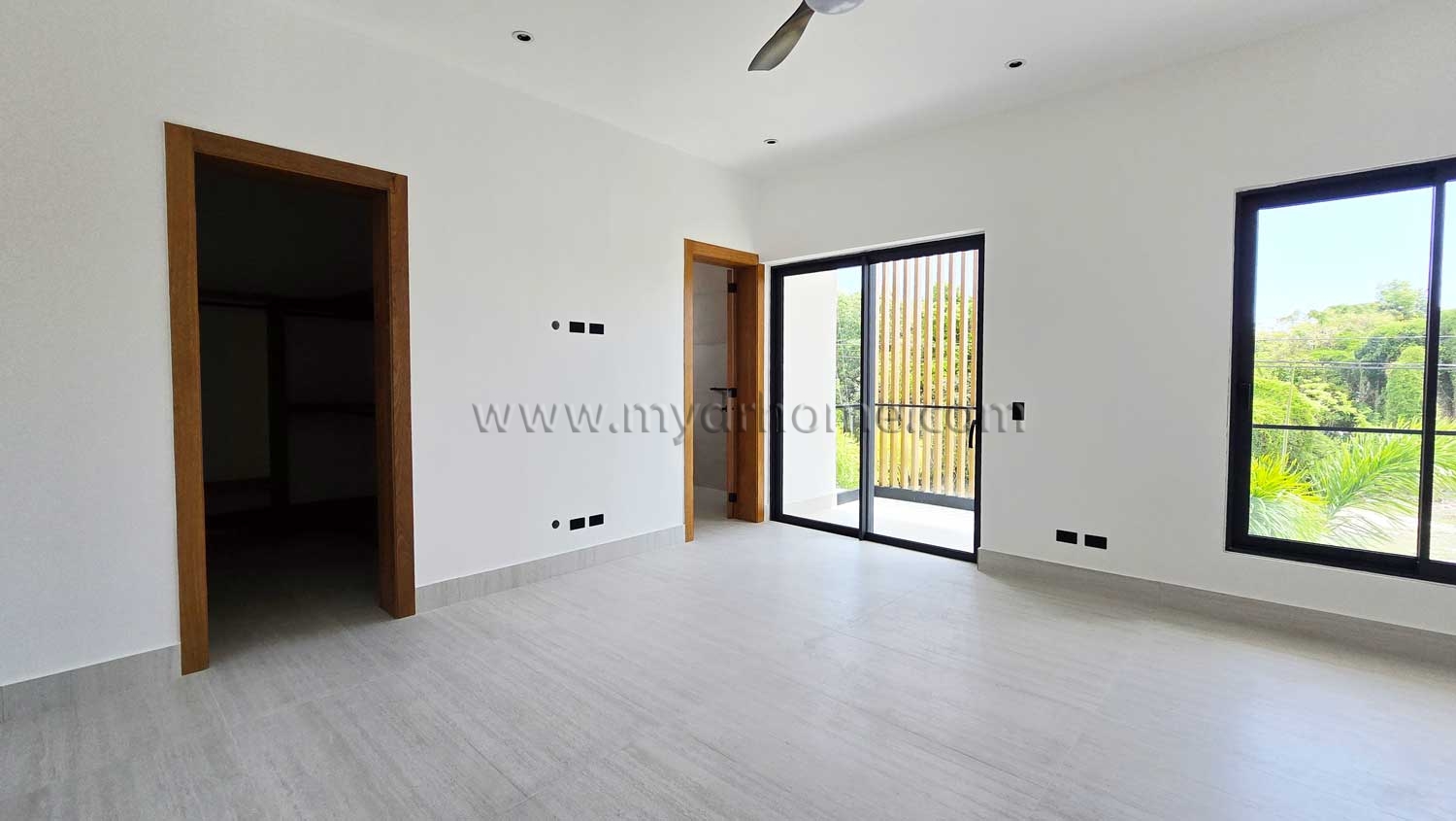 Upstairs, the home reveals its most private spaces. The master suite offers comfort and elegance. Two balconies allow natural light and fresh air to flow inside. A generous walk-in closet and stylish bathroom complete the suite.